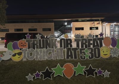I did a Trunk‑or‑Treat install for a local school, and it was such a blast. Halloween is my favorite holiday—right behind Christmas—so getting to use all of our fun Halloween signs to create a special welcome for the participants was lots of fun!